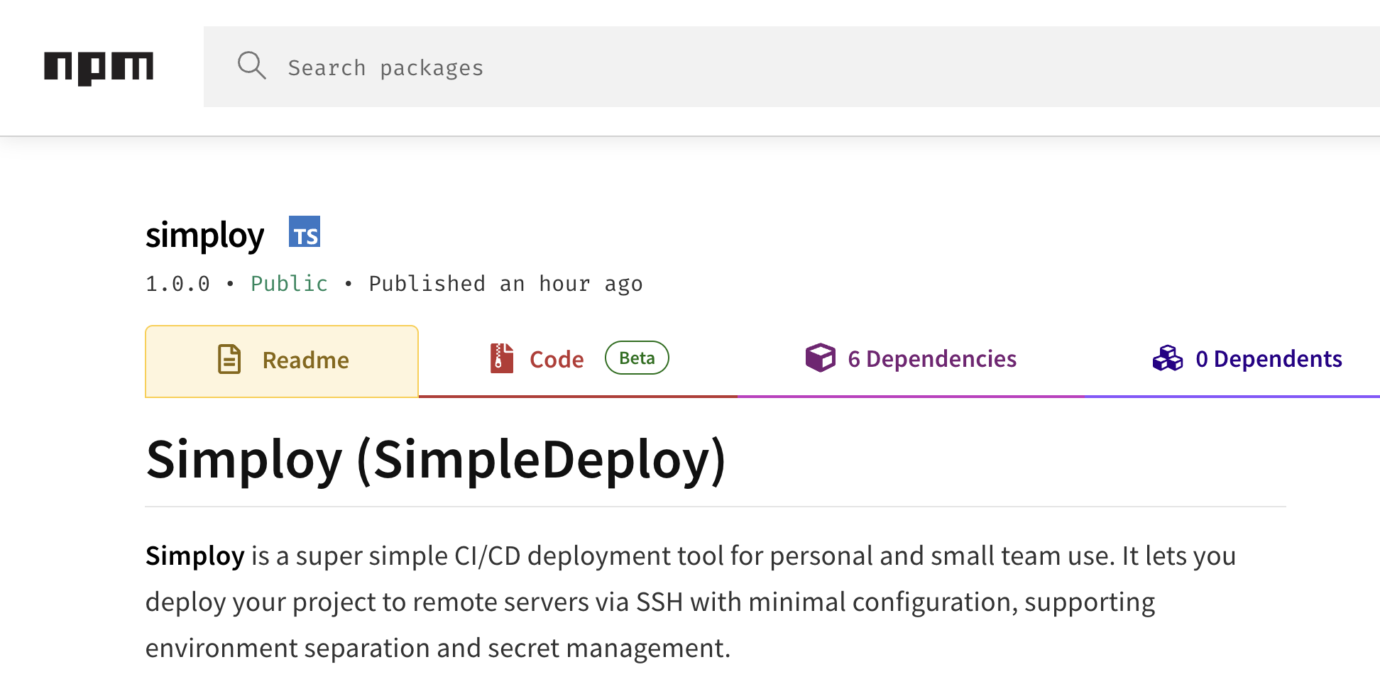 npm: https://www.npmjs.com/package/simploy
